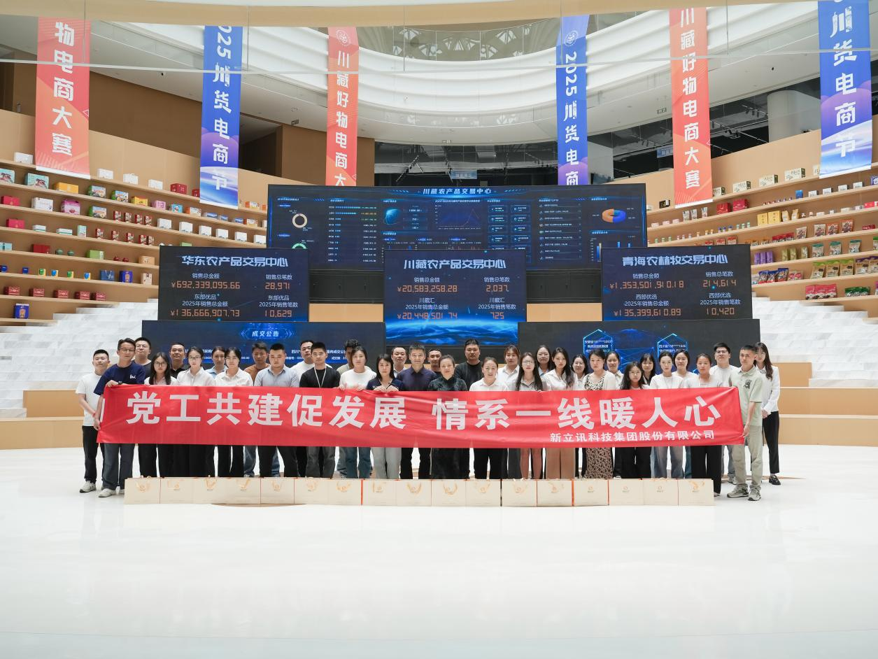 在喜迎中國共產黨成立104周年之際,新立訊科技集團黨支部聯合集團工會于2025年6月27日開展"黨工共建促發展 情系一線暖人心"主題慰問活動。公司黨員代表及工會主席王宗蘭前往川藏農產品交易中心,為協辦四川省“2025川貨電商節”川藏好物電商大賽堅守崗位的一線員工送去慰問品和深切關懷。
