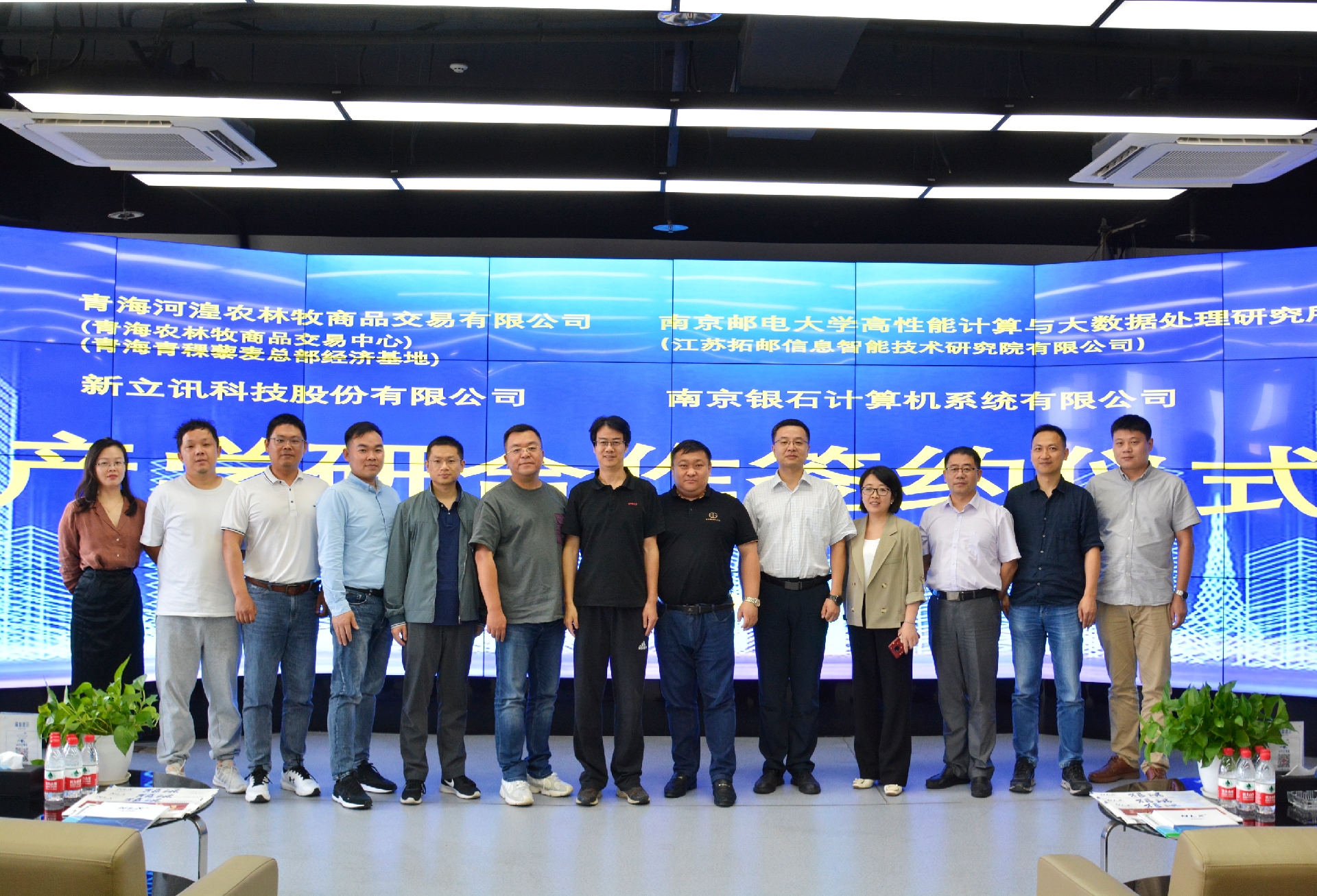 新立訊與南京郵電大學高性能計算研究所、青海農林牧商品交易中心、銀石計算機共同簽署“產學研合作協議”