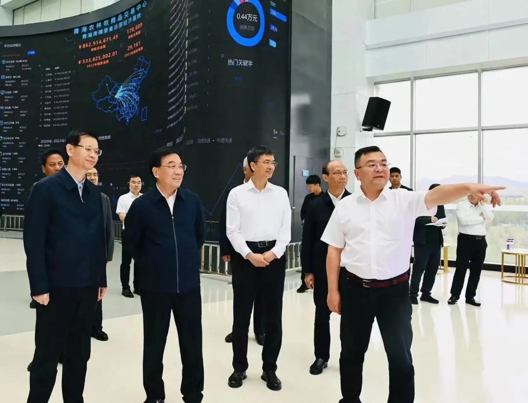 “牛肉羊肉牦牛肉、青稞藜麥枸杞子,奶貝奶片和奶酪、富硒土豆菜籽油。”交易中心負責人毛霖(新立訊創始人)以朗朗上口的串詞向領導們介紹青海特色農副產品和“西部優選”平臺運營情況,并隆重推介正在江蘇鹽城籌建的“華東農產品交易中心”。
