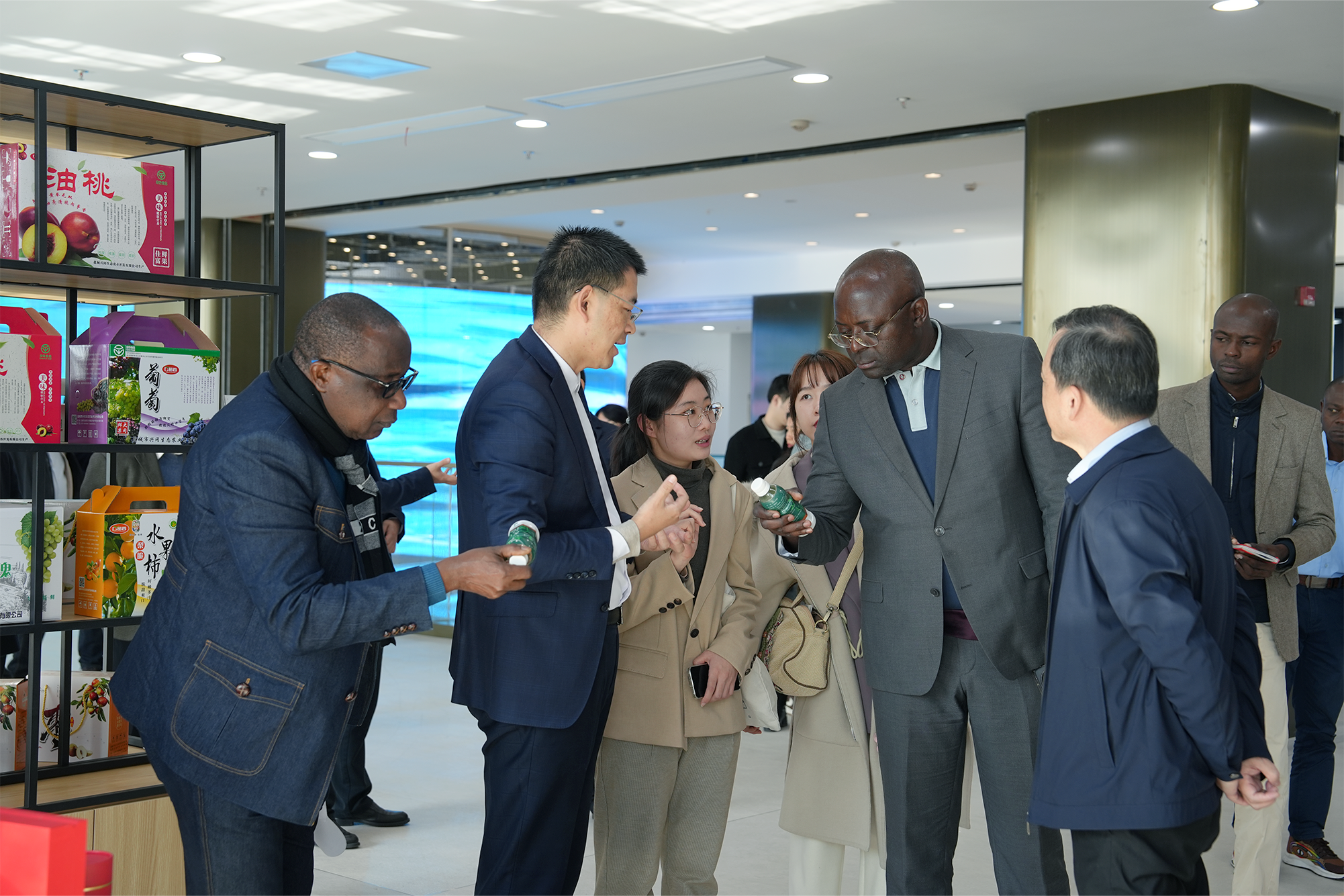 保羅·瓦朗坦·恩戈博(NgoboPaul  Valentin)對展銷的特色農產品興趣濃郁,并對交易中心工作給予高度贊賞,期待雙方未來加強商務聯系,通過跨境展會、經貿論壇、考察交流等多種形式打造雙向農業農產交流合作,助力交易中心開拓對外經貿流通銷售渠道。