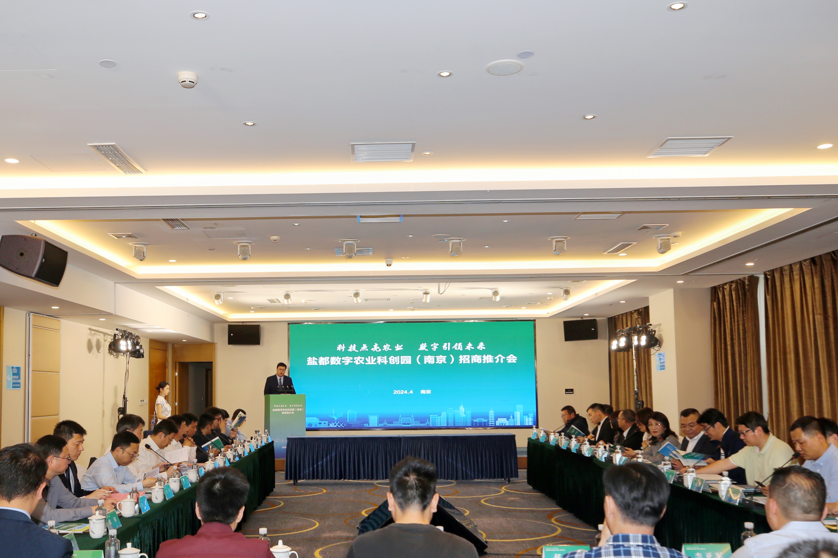 2024年4月25日,“科技點亮農業、數字引領未來”鹽都數字農業科創園(南京)招商推介會在南京雨花錦江都城酒店召開。鹽都區人民政府副區長孫高明,鹽都區農業農村局局長劉志貴,鹽都區供銷合作社黨委書記、主任吉連生,鹽都區國控集團(鮮之都集團)董事長李杰,鹽都區鹽瀆街道黨委書記蔣國興,鹽瀆街道黨委副書記徐博,南京郵電大學高性能研究所所長、博士生導師季一木教授,浙江大學海洋學院博士生導師張帆教授,新立訊科技集團董事長(兼青海、華東交易中心董事長)毛霖,江蘇印加新能源科技股份公司董事長毛海娟,華東農產品交易中心副總經理楊慶慶,中山沃通電子科技公司董事長王德勝,深圳朗道智通(農業機器人)技術總監何灝,農芯(南京)智慧農業研究院院長吳文彪等企業代表、專家及嘉賓60余人出席參會。